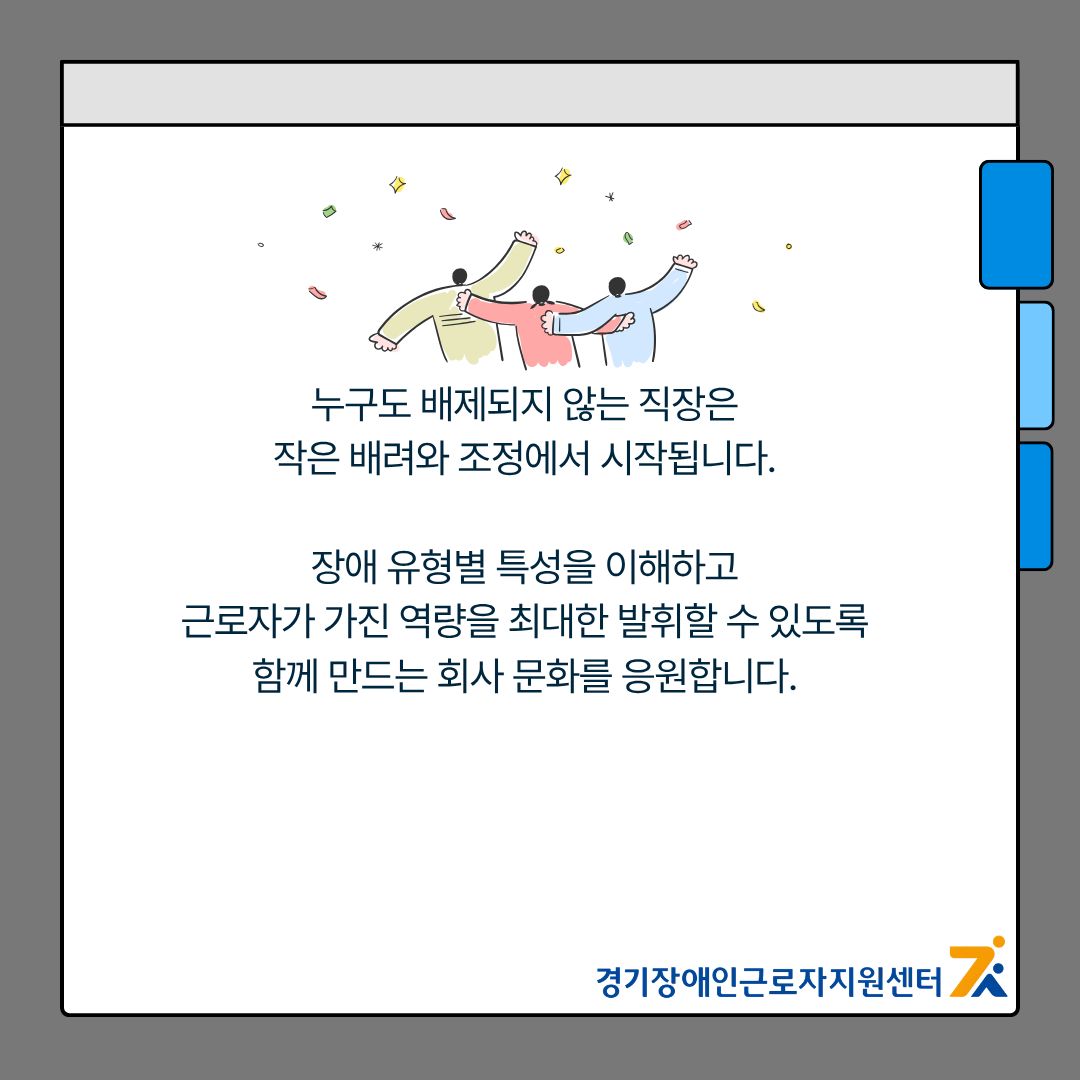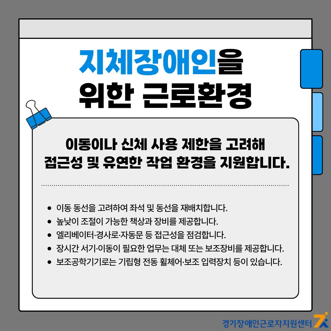 홈전체게시판정보게시판 정보게시판 장애 유형별 근로환경 조정 가이드 작성자 관리자 작성일 2025-11-25 13:37 조회 22 좋아요 0 싫어요 0 인쇄 « 직장에서 동료들과 잘 소통하는 방법 장애인 근로자를 위한 업무 경계 설정법 » 목록보기 답글쓰기 Powered by KBoard